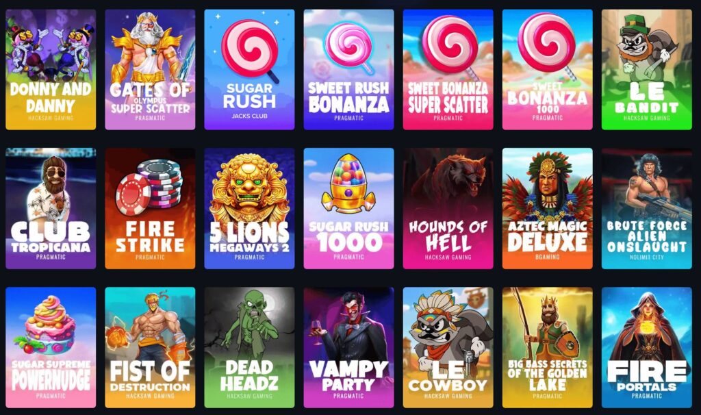 One of the biggest selling points of JacksClub.io is its game collection — over 9,525+ titles from both exclusive originals (like Mines, Plinko, Sugar Rush, etc.) and classic casino fare like slot machines and live dealer tables.